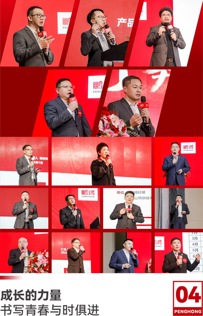 有目標,就要有行動。立足2025全年戰(zhàn)略目標的實現,鵬鴻木業(yè)集團營銷中心總監(jiān)孫碩、品牌中心總監(jiān)諶偉、培訓中心總監(jiān)黃亮、供應鏈中心總監(jiān)李宗偉、財務中心總監(jiān)張國華,分別就市場運營、品牌賦能、經銷商培訓、產品提升及供應鏈優(yōu)化等方面詳細解讀,以期實現鵬鴻市場競爭力升級強化,為經銷商的經營質量與效率,提供更強大的平臺支持。