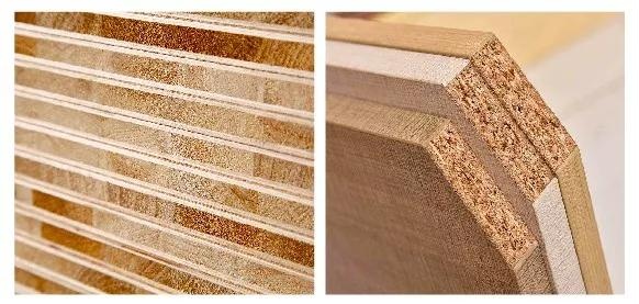 鵬鴻生態(tài)板和顆粒板側(cè)面實(shí)拍對比